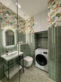 Выполнен ЭКСКЛЮЗИВНЫЙ ДИЗАЙНЕРСКИЙ евроремонт по индивидуальному проекту с использованием высококачественных и экологически чистых материалов. Напольное покрытие высокого качества и прочности. На кухне и в санузле керамогранит с подогревом, система протечек. Система приточно-вытяжной вентиляции с климат-контролем. Презентабельная гостиная с выходом на кухню, изолированная спальня, в ванная комнате установлена качественная европейская сантехника, стиральная машина с сушкой. Много мест хранения. Квартира обставлена стильной мебелью, оснащена встроенной бытовой техникой, холодильник Side-by-Side. Создана атмосфера комфорта и релакса.