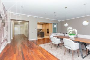 Планировка: кухня - гостиная, кабинет, две спальни, каждая со своим санузлом и гардеробной, гостевой санузел. Потолки 3,5м. Мебель и бытовая техника ведущих мировых производителей.