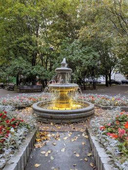 Благоустроенный закрытый двор с парком. В любое время года есть парковочные места. С внутренней стороны дома - прямой выход на набережную Тараса Шевченко.