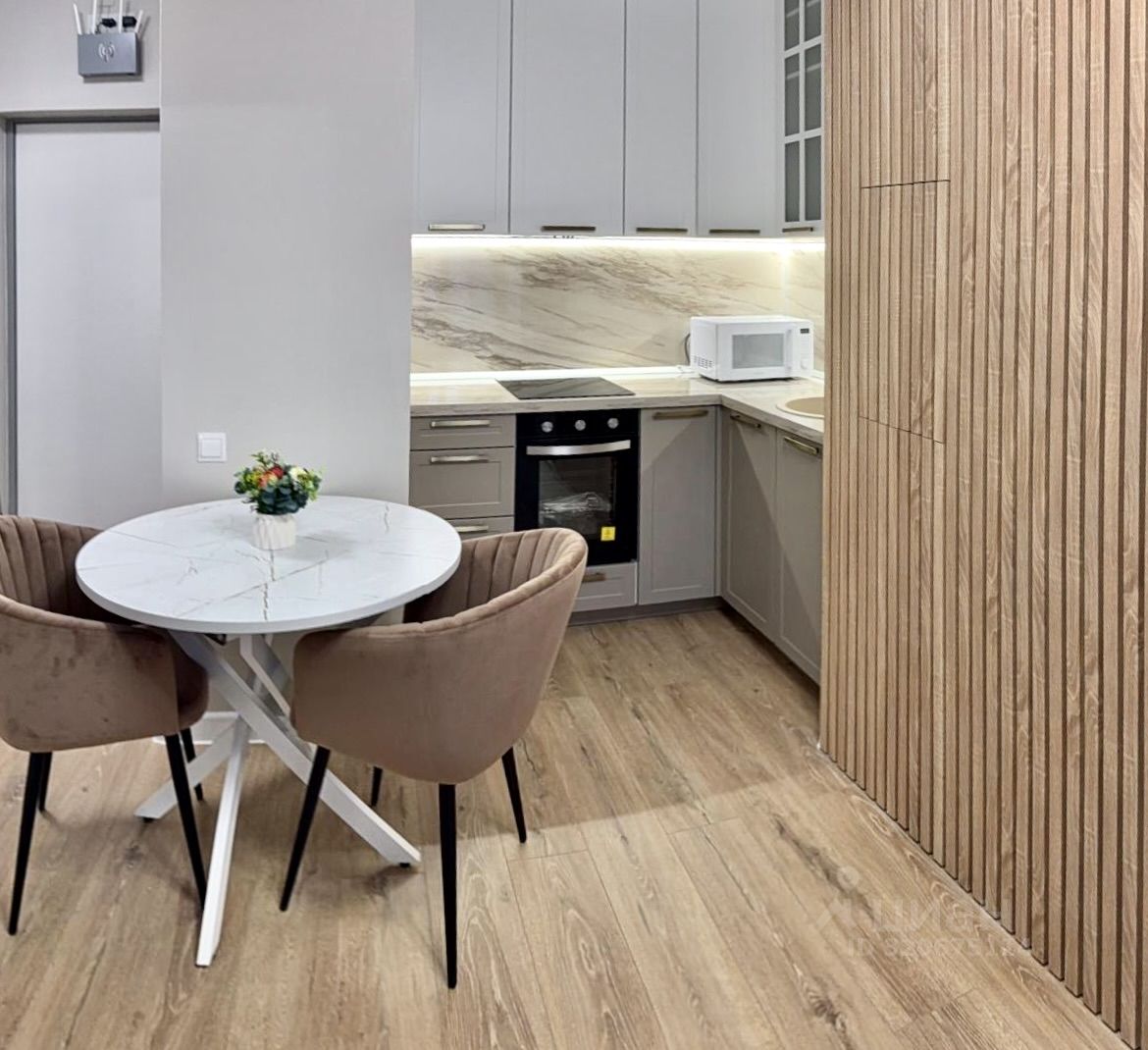 В квартире выполнен качественный ремонт и установлена мебель по индивидуальному проекту, есть всё необходимое для комфортной жизни: современная кухня с варочной панелью, духовым шкафом и микроволновой печью; вместительный холодильник; стиральная машина; встроенный шкаф в прихожей; уютная обеденная зона и стильная мебель в каждой комнате.