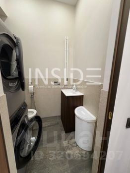 При входе в квартиру расположен второй гостевой с/у- постирочная, в котором расположена стиральная и сушильная машина Наiеr. Так же при входе расположена просторная гардеробная для верхней одежды и дополнительного хранения.