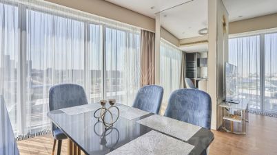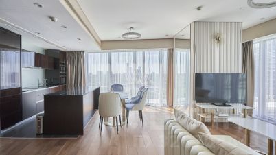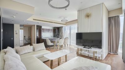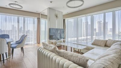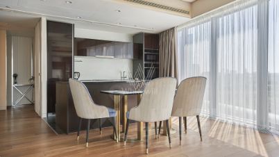 Видовые угловые апартаменты площадью 110 м² в комплексе небоскрёбов премиум-класса ОКО Towers. Выполнена премиальная дизайнерская отделка в современном стиле, санузлы отделаны белым мрамором. Панорамное остекление, высокие потолки. Апартамент ранее не сдавался, только закончен ремонт.