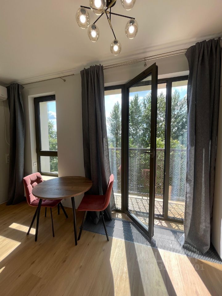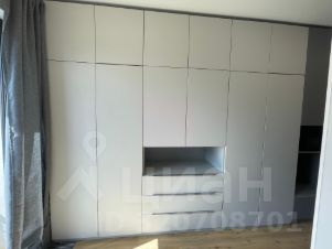Квартира оборудована холодильником, варочной панелью, посудомоечной и стиральной машиной, электрическим чайником, кондиционером, системами теплого пола и умного дома с контролем протечек. Для комфортного проживания в студии расположена полноценная двуспальная кровать (140см), отделенная нишей от кухонной зоны. Одним из преимуществ данной студии является большое число мест хранения, включающее в себя: вместительный распашной шкаф размерами 3мх4м с антресольными секциями и комодом, зеркальный шкаф-купе в прихожей, полку для обуви. Панорамные окна выходят на тихую зеленую улицу. Есть балкон, на котором при вашем желании можно поставить небольшой летний столик. В студии предусмотрено место под рабочий стол, который вы можете также разместить при необходимости.