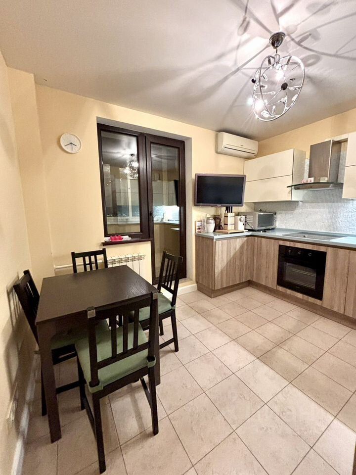 В квартире есть все необходимое для вашего удобства: современная мебель, кондиционер, телевизор, холодильник, стиральная и посудомоечная машины. Просторная кухня, оборудованная всем необходимым, станет отличным местом для семейных обедов. В совмещенном санузле установлена душевая кабина. Окна квартиры выходят во двор, поэтому в квартире всегда тихо и спокойно. Также имеется балкон для вечерних посиделок на свежем воздухе.