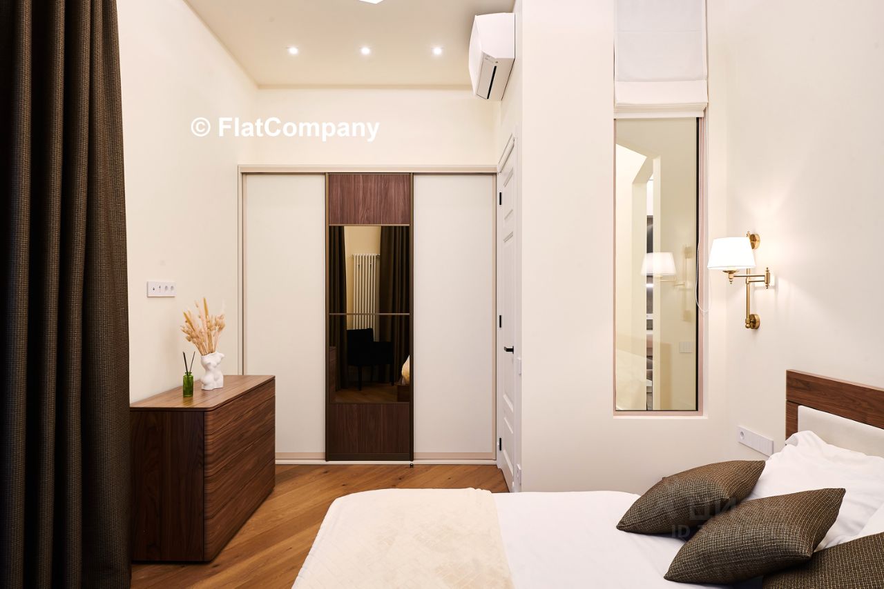 Сдается стильная евро-трешка, с 2-я изолированными спальнями в охраняемом клубном ЖК "Садовые Кварталы" с большой собственной территорией БЕЗ машин (ЦАО, Хамовники, 3 квартал, Усачева 11). Для проживания 1-3 человек (возможно с детьми). Эксклюзивный ремонт 2024 от европейского дизайнерского бюро.