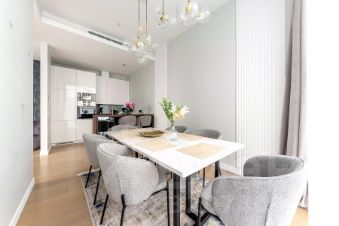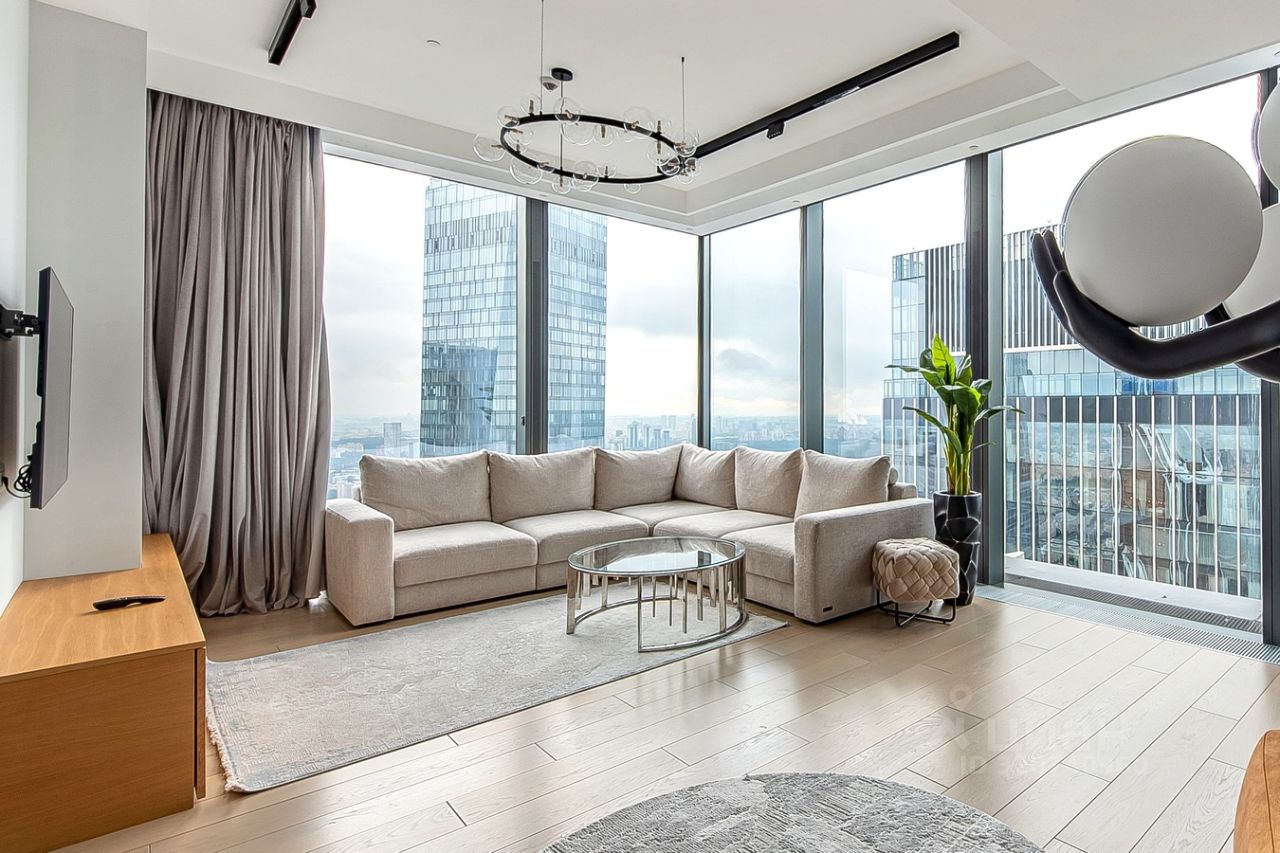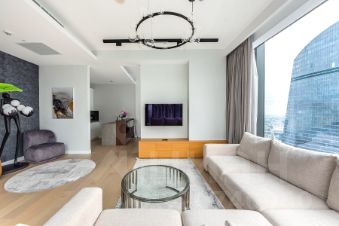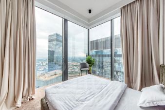• Апартаменты находятся в Москва-Сити, предлагая великолепный вид на столицу.