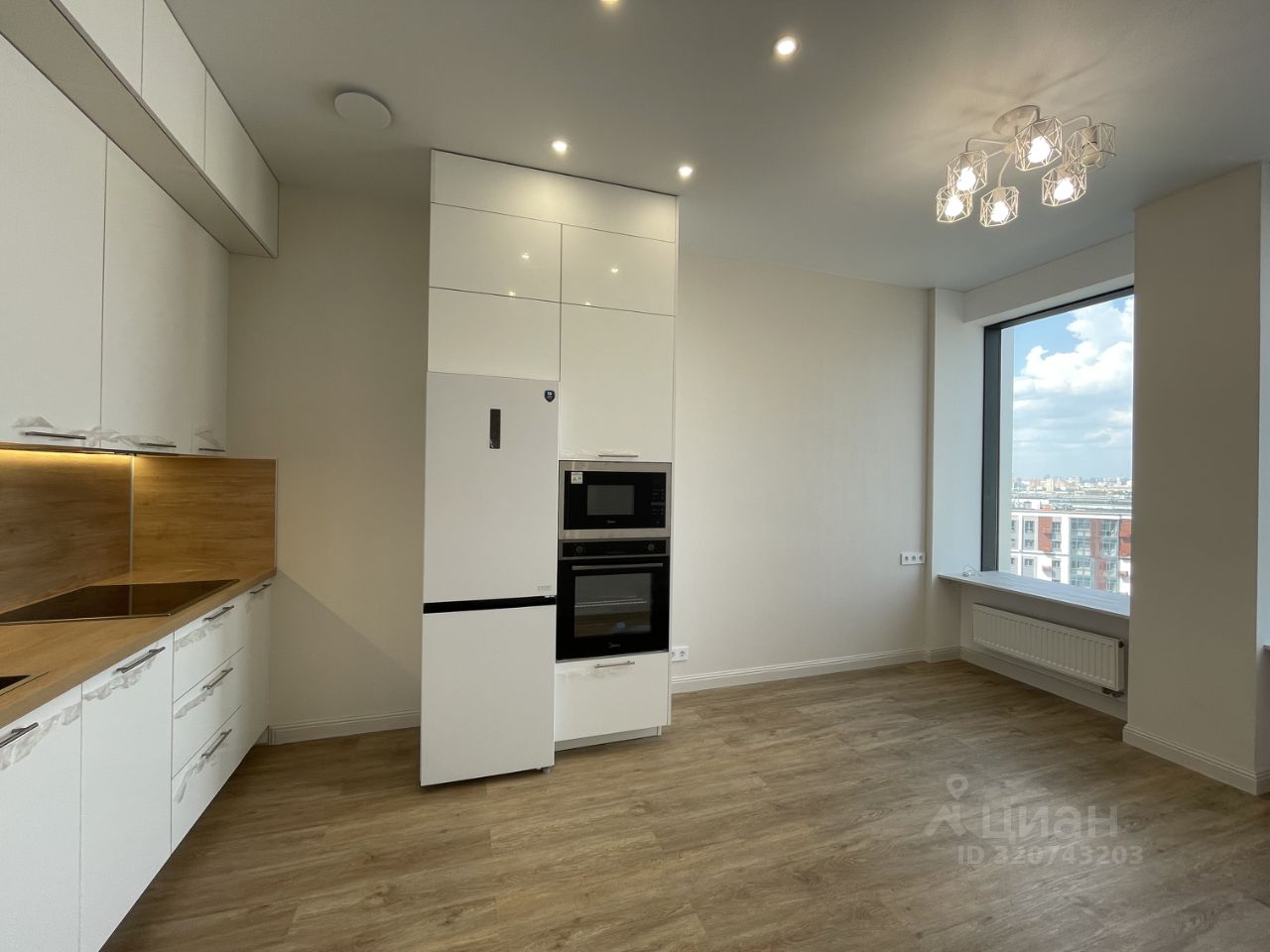 - кухонный гарнитур оснащен всей необходимой техникой: посудомоечная машина, варочная панель, духовой шкаф, микроволновка, холодильник.