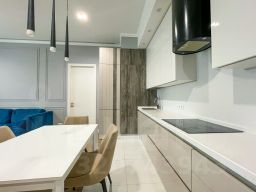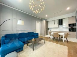 Квартира 87 кв.м + две лоджии, с дизайнерским ремонтом, полностью меблирована и укомплектована всей необходимой бытовой техникой.