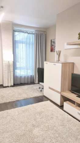 Квартира в малоэтажном ЖК бизнес-класса "Новая Пресня". Тихо, комфортно. Окна во двор. Рядом с набережной Москва реки. В пешей доступности от Москва-Сити, Экспоцентра, Афимолла. Удобные транспортные развязки в любую точку города. В доме просторные холлы, пропускной режим, круглосуточная охрана, видеонаблюдение, сенсорные бесшумные лифты, есть минимаркет. Высокие потолки 3м. Хороший ремонт. В комнате два высоких витражных окна. Квартира полностью оборудована мебелью и техникой. В комнате ковер, велюровый диван (раскладной), полноценное РАБОЧЕЕ МЕСТО, есть КОНДИЦИОНЕР. На кухне есть ПОСУДОМОЕЧНАЯ машина. В ванной стиральная машина с СУШКОЙ. WI-FI, TV, встроенный шкаф-купе, двуспальная кровать.