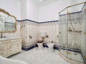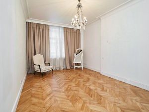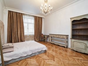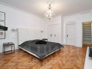 Планировка: просторная гостиная, изолированная кухня, хозяйская мастер-спальня с ванной комнатой и гардеробной, две спальни, ванная комната, гостевой санузел, постирочная, хозблок, большая терааса с выходом в зеленой двор. Итого спален три. Выполнен ремонт по индивидуальному проекту с использованием натурального мрамора и ценных пород дерева. Высокие потолки. Квартира полностью меблирована и укомплектована всей необходимой техникой.