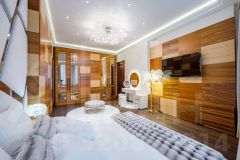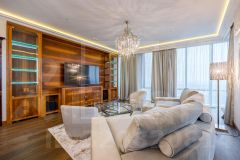 В квартире: М/место в подземном паркинге, Посудомоечная машина, Стиральная машина, Сушильная машина, Кондиционер, Интернет, Видовая квартира, Можно с детьми, Можно с животными, Вид на реку, Интерьер в современном стиле, Консьерж, Гардеробная комната, Ремонт - дизайнерский, Окна на улицу, Окна во двор