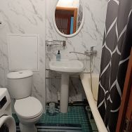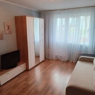 В квартире сделан косметический ремонт. Просторная комната обставлена мебелью, а на кухне есть всё необходимое для комфортного проживания: холодильник, стиральная машина, телевизор. В санузле установлена ванна. Лоджия добавляет дополнительное пространство для отдыха или хранения вещей. Также в квартире проведён интернет.