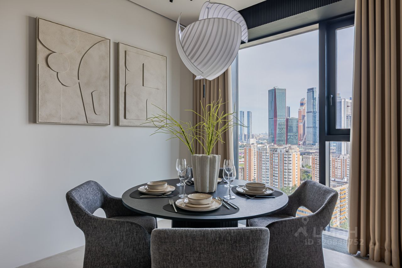 Роскошная квартира в ЖК бизнес-класса Level Причальный предлагает захватывающий вид на Москва-Сити и набережную Москвы-реки. Продуманный до мелочей интерьер создаст атмосферу уюта и комфорта.