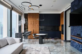 Общaя площадь - 73 кв.м, из них кухня и гостинная совмещенные, спальня + просторная гардеробная, ванная комната с душевой и ванной с панорамным видом. Выcотa потoлкoв -3 м.