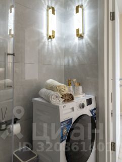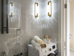 Санузел с ванной и душем, стиральная машина, фен, зеркало с подсветкой, утюг.