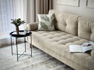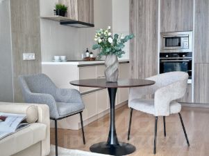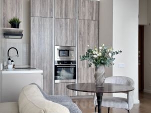 В квартире выполнен дизайнерский ремонт, собственники делали его для себя, получилось уютно и комфортно. В наличии вся необходимая мебель, а также современная техника: два кондиционера, холодильник, посудомоечная и стиральная машины, телевизор.