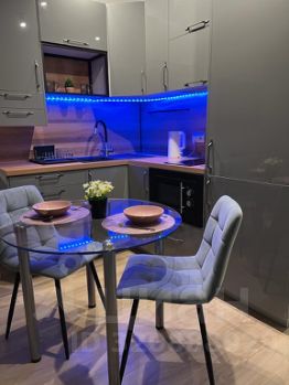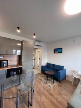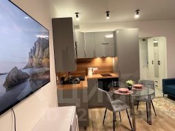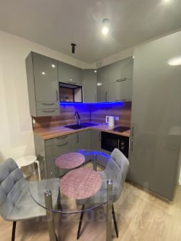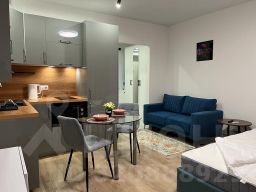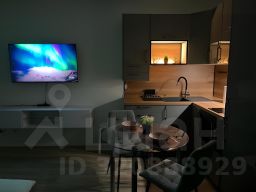 В студии есть вся необходимая мебель и техника: удобный диван, полноценная кровать с качественным и новым матрацем, вместительный шкаф для хранения вещей, кухонный гарнитур с варочной панелью, встроенный полноценный холодильник, микроволновая печь, а также стиральная машина. Совмещённый санузел выполнен в современном стиле.