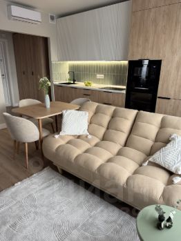 Квартира с дизайнерским ремонтом и современной обстановкой. На кухне и в комнате есть вся необходимая мебель. Из техники: кондиционер, холодильник, посудомоечная машина, стиральная машина и телевизор. Ванная комната оборудована ванной. Окна выходят во двор, что обеспечивает тишину и уют.