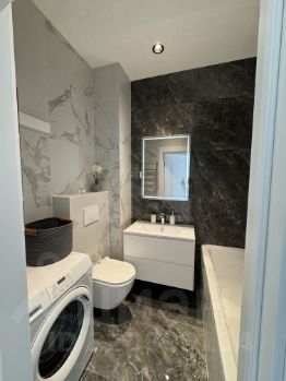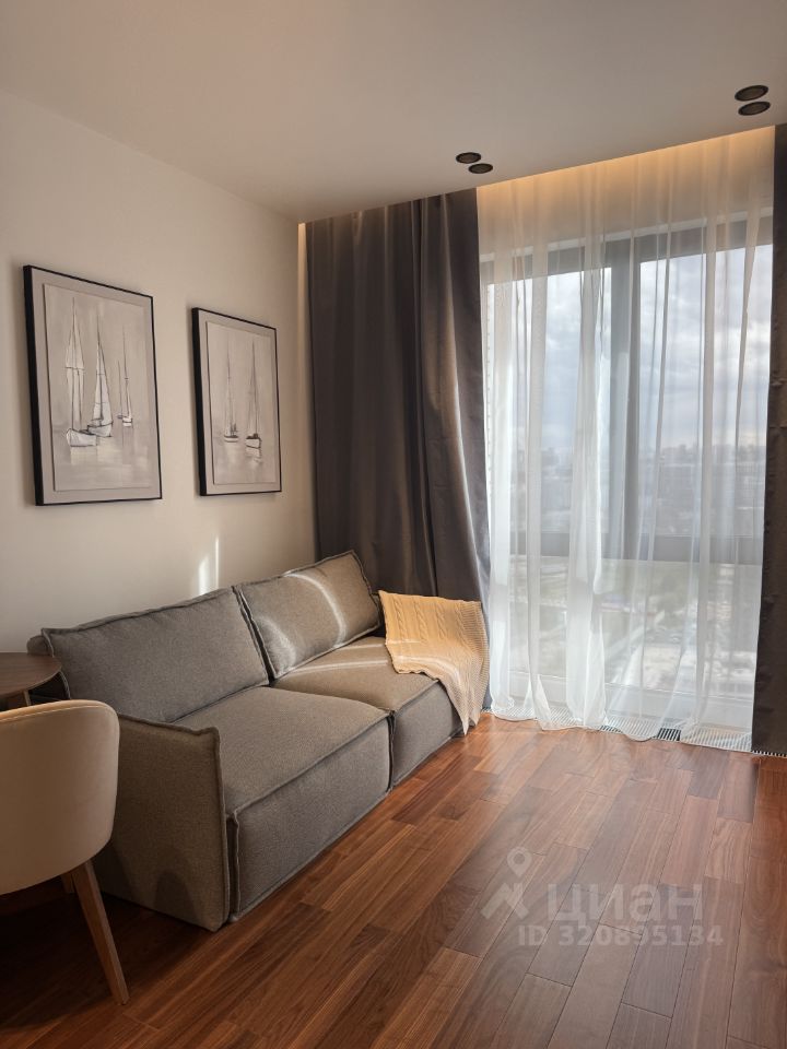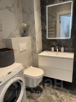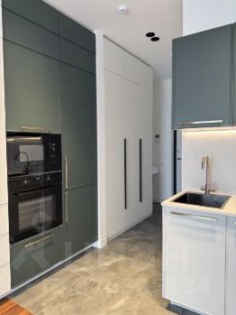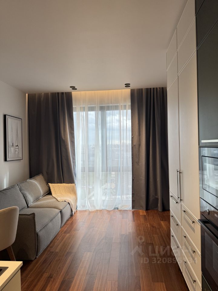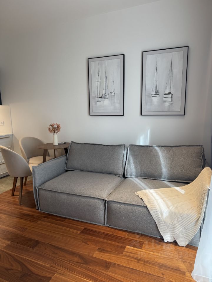 Современная кухня переходящая в гостиную с панорамными окнами, холл с системой хранения, санузел с ванной. Вся необходимая мебель и техника: стиральная и посудомоечная машины, духовой шкаф, варочная плита, микроволновая печь, холодильник, кондиционер, системы хранения, двуспальный диван. Телефизор, Wi-Fi.