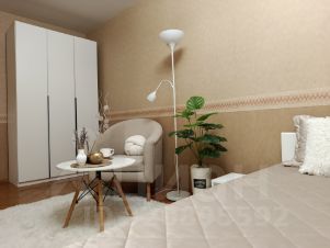 Квартира в хорошем состоянии, после недавнего косметического ремонта, светлая и теплая. Большая комната (20м), санузел раздельный, установлены пластиковые окна и металлическая дверь, есть все необходимое для комфортного проживания. В комнате новая современная мебель из Хофф, кровать с ортопедическим матрасом, вместительные шкафы для хранения вещей.