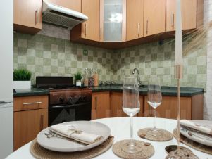 Квартира расположена в тихим зеленом районе с развитой инфраструктурой - множество продуктовых и хозяйственных магазинов, рынок, школа и детский сад. Во дворе много мест для парковки.
