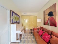 ID 47262. Изысканная 4-комнатная квартира в жилом комплексе "Смоленская застава", расположенном на пересечении старинных московских переулков Ружейного и Земледельческого. Квартира с эксклюзивной итальянской мебелью, дорогостоящими отделочными материалами, в ванных комнатах мозаика Sicis. Кондиционеры, посудомоечная и сушильная машины, подогрев полов, интернет, сигнализация. Общая площадь — 197 кв. м. Планировка: гостиная-кухня, основная спальня с 2-мя гардеробными и ванной комнатой, 2 детские комнаты с ванной комнатой, гостевой туалет, балкон. Панорамные виды на город. В комплексе для комфорта и безопасности жильцов предусмотрен подземный гараж, многоуровневая система безопасности, современные инженерные системы, надежные лифты. Развитая окружающая инфраструктура: гимназия, детский сад, кафе и рестораны, "Смоленский пассаж". 2 машино-места в подземном паркинге включены в стоимость. Можно с детьми, без животных.