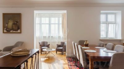 Главное о квартире: десятый этаж, 210 метров, просторная кухня-гостиная, мастер-спальня со своей ванной и гардеробной, две гостевые комнаты, постирочная, два санузла и застеклённая лоджия. Можно жить с питомцами. В стоимость аренды входит машиноместо в подземном паркинге.