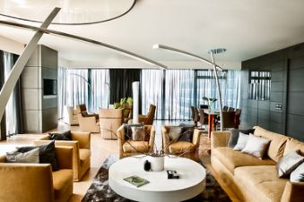 Панорамное остекление открывает захватывающие виды на столицу, наполняя пространство естественным светом и энергией.