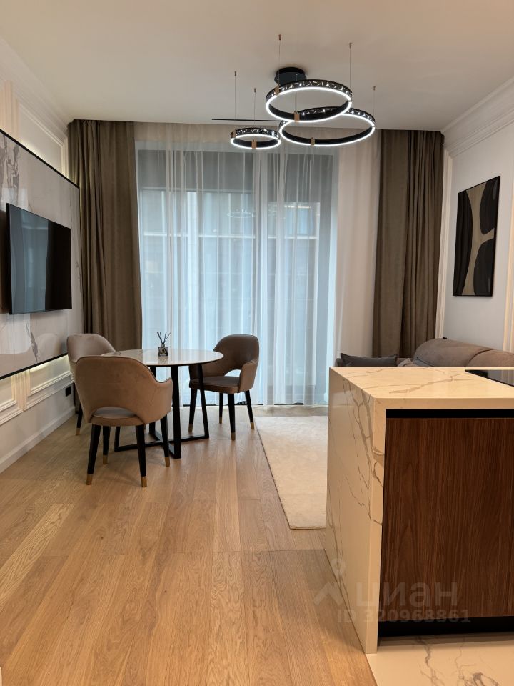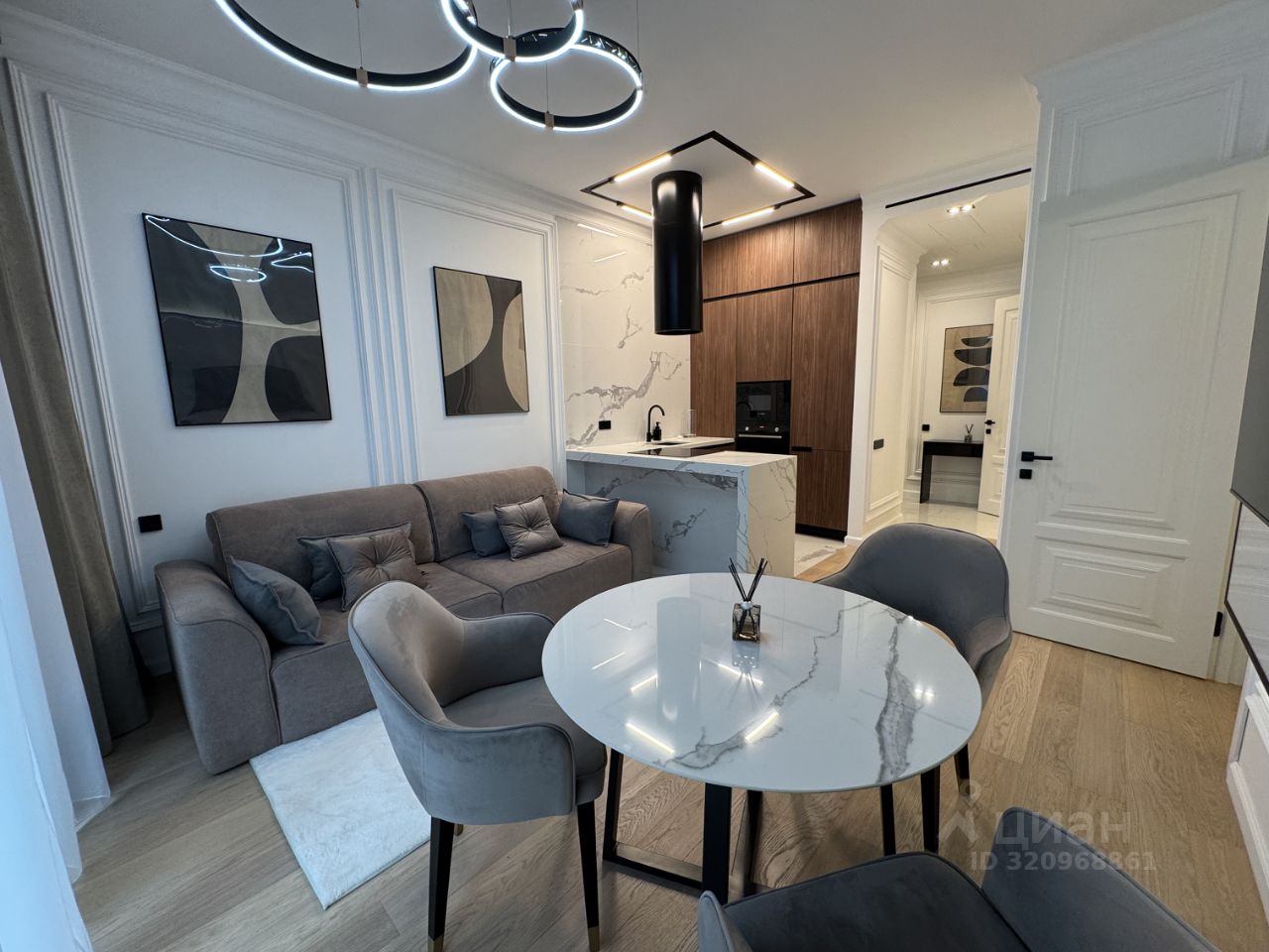 Просторная кухня-гостиная, спальня с гардеробной комнатой и санузел. Панорамные окна (вид на благоустроенный внутренний двор с ландшафтным дизайном) и потолки 3.2м, шторы блэкаут с системой автоматического открывания. Вся необходимая бытовая техника. Система умный дом. 2 колонки Алиса.