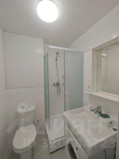 Ванная оборудована двумя шкафами, туалетом, зеркалом, душевой кабиной с душем.