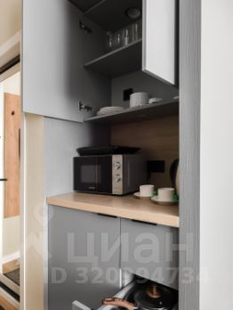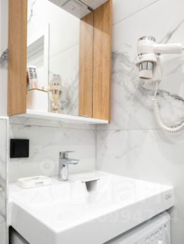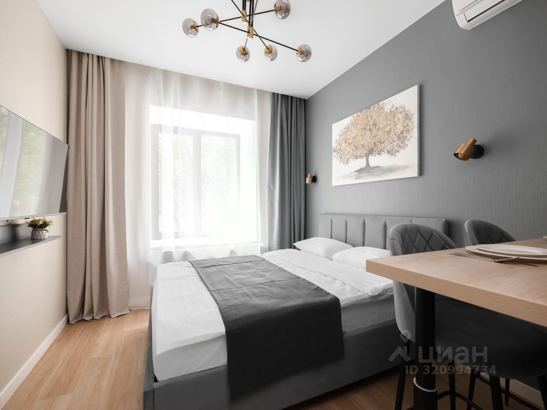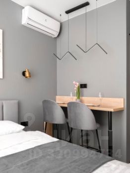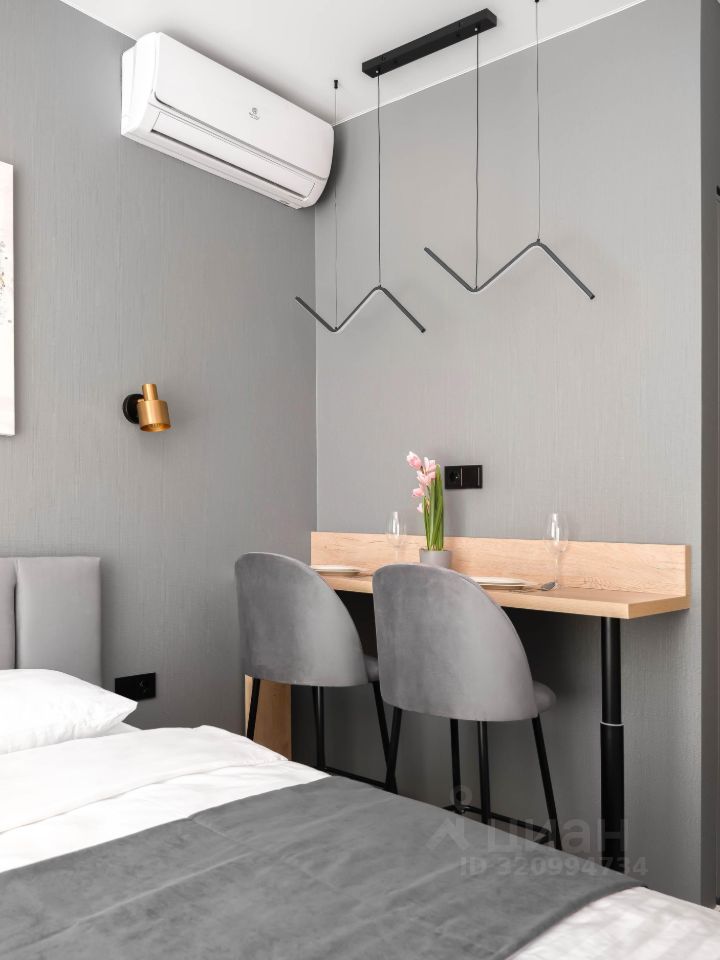 Апартаменты оснащены всем необходимым для комфортного проживания. Сделан дизайнерский ремонт, который подчеркивает уникальность и уют пространства. В комнате есть современная мебель, а также необходимая техника: кондиционер, холодильник, телевизор и стиральная машина. Удобная душевая кабина в санузле позволит расслабиться после насыщенного дня. Окна выходят на улицу, поэтому в студии всегда светло и свежо.