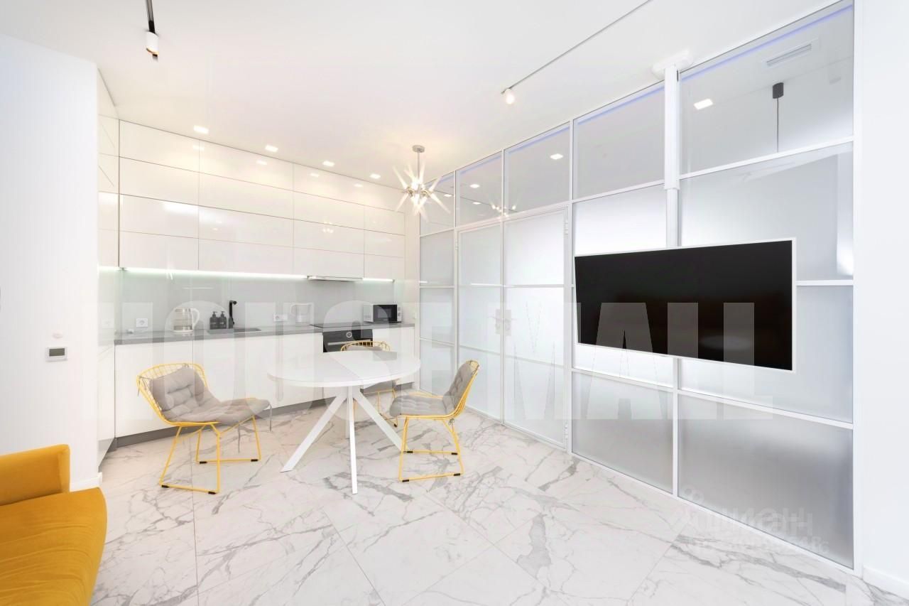 Комнаты укомплектованы удобной мебелью и системами хранения. Кухонный гарнитур оснащен расширенным комплектом бытовой техники, включая посудомоечную машину и духовую печь. Установлена стиральная машина. Комфортный микроклимат поддерживают сплит-система и теплые полы.