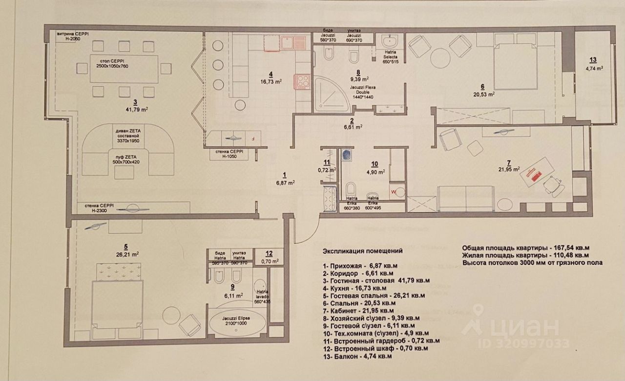 - мастер-спальня с большим с/у, лоджией и гардеробом;