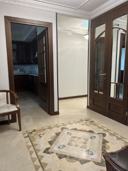 В долгосрочную аренду предлагается просторная видовая квартира с 3 спальнями общей площадью 167 кв.м в элитном ЖК бизнес-класса Камелот в Хамовниках. В квартире выполнен дизайнерский ремонт в классическом стиле с использованием натурального камня и ценных пород дерева. Дубовый паркет, мраморные полы с подогревом в зоне холла, кухни и мастер с/у, встроенная система приточно-вытяжной вентиляции и кондиционирования. Потрясающие виды на центр города и парк Трубецких в зоне гостиной.