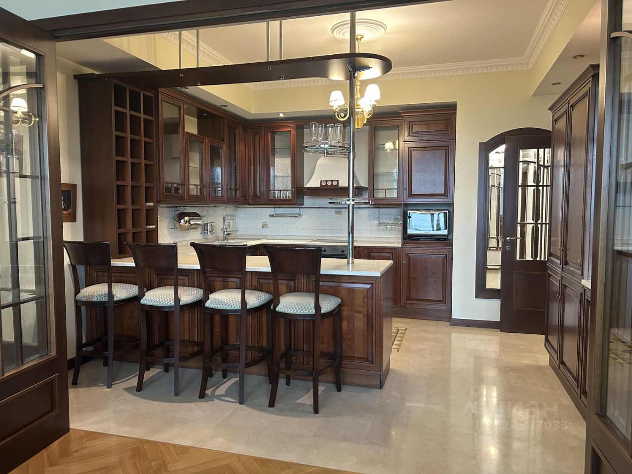 - кухня Scavolini с мраморной столешницей, с 2 встроенными холодильниками;