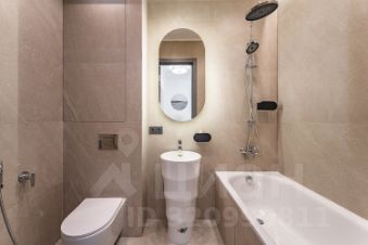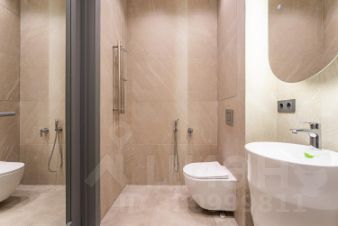 • ванная оформлена в каменной пластике с подсветкой, что визуально перекликается с фасадной алюминиевой сеткой.