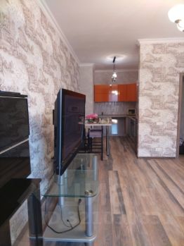 В квартире сделан евроремонт, что создает атмосферу уюта и современности. Просторная кухня -гостинная площадью 25 кв. м полностью обставлена мебелью и оборудована необходимой техникой: холодильник, стиральная машина, телевизор. В комнате также есть вся необходимая мебель для комфортного проживания. Ванная комната оснащена полноценной ванной.
