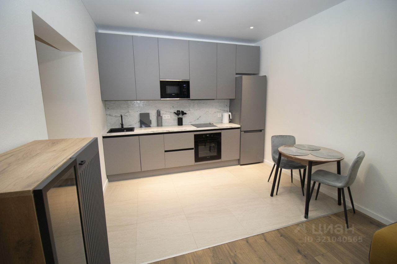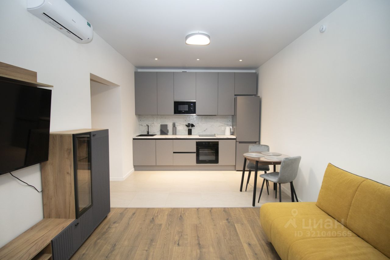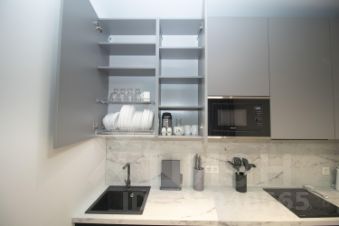 Квартира новая. Полностью меблирована. Во всех комнатах кондиционеры. Стиральная машина с сушкой. Квартира укомплектована необходимой кухонной посудой. Встроенная варочная панель, духовой шкаф, посудомоечная машина, микроволновая печь, чайник, холодильник. Также имеется гладильная доска и утюг, раскладная сушилка для белья. Телевизор в кухне-гостиной. На балконе столик и два кресла(фото).