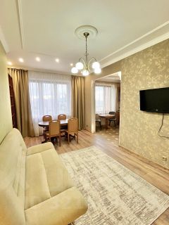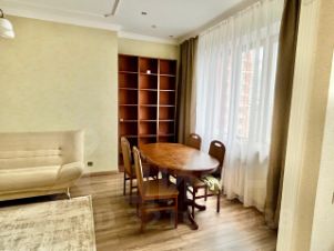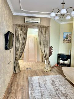 В квартире сделан качественный, евроремонт, полностью меблирована и технически оснащена. Планировка квартиры: кухня - гостиная (зонирована на две части), кладовая комната, два с/у (душевая, ванна), 1 спальная комната со своей гардеробной и выходом на лоджию. Оригинальное световое оформление, 2 кондиционера, теплые полы. Прекрасный панорамный вид из всех окон, окна на юго-восток!
