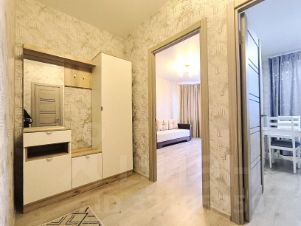 В квартире выполнен хороший ремонт, просторная прихожая, кухня укомплектована новым встроенным кухонным гарнитуром, обеденной зоной, вся бытовая техника в наличии, выход на лоджию. В комнате установлен новый двуспальный раскладной диван, кондиционер, комод под ТВ, компьютерный стол, встроенный просторный зеркальный шкаф купе. Санузел совмещенный, комфортная душевая кабина, качественная сантехника.