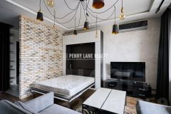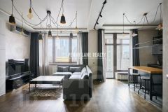 Планировка: прихожая с двумя вместительными шкафами, гостиная и кухня единым пространством, просторная лоджия с панорамным остеклением и шкафом для хранения вещей, санузел с большой душевой кабиной. Полноценная двуспальная кровать складывается в стену, делая пространство легким и свободным. Выполнен дорогостоящий дизайнерский современный ремонт. Теплый пол, сантехника Grohe, кондиционер, тв, кухня укомплектована техникой Liebher, фильтр для воды. Окна во двор.