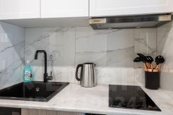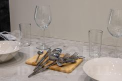 - Стильный кухонный гарнитур со всем необходимым для приготовления любимой домашней еды (техника, кухонные принадлежности, посуда, столовые приборы)