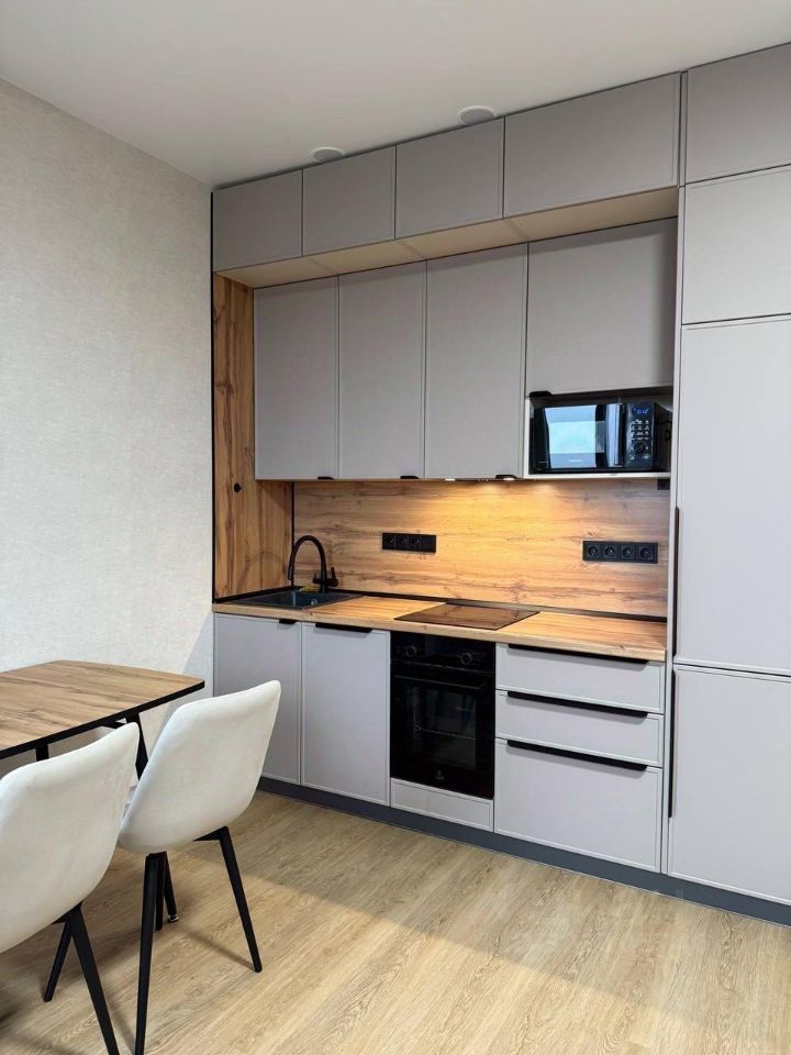В квартире сделан дизайнерский ремонт, который подчеркнёт ваш вкус. Жилая зона обустроена с мебелью, а кухня полностью оснащена необходимой техникой: кондиционер, холодильник, посудомоечная и стиральная машины. Дополнительно на кухне стоит фильтр для питьевой воды. В ванной комнате установлена ванна, что позволяет полноценно расслабиться после рабочего дня и уделить время себе. Там же установлен теплый пол.