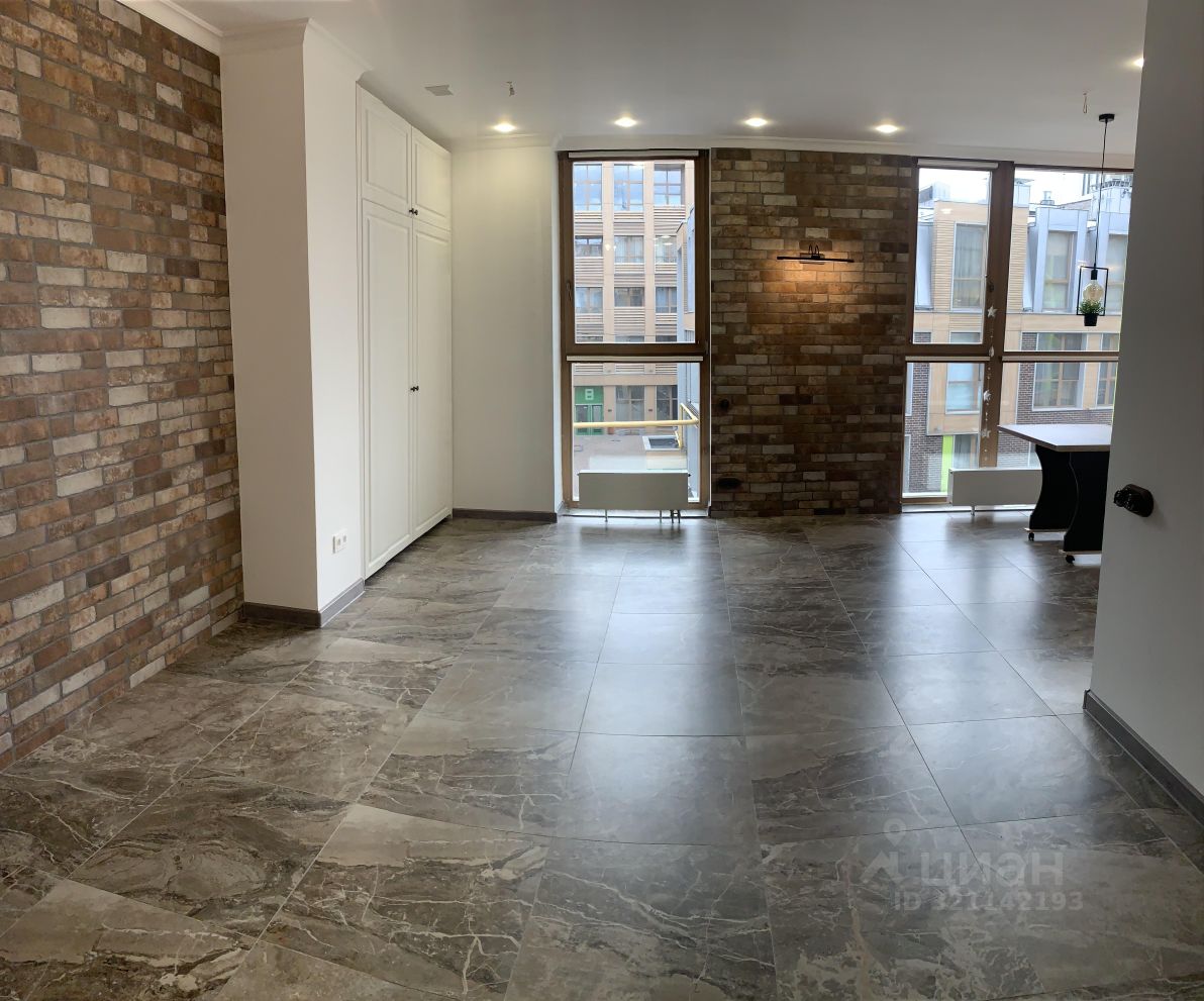 Квартира продолжает стиль комплекса, добавляя элементы лофта и скандинавского дизайна.