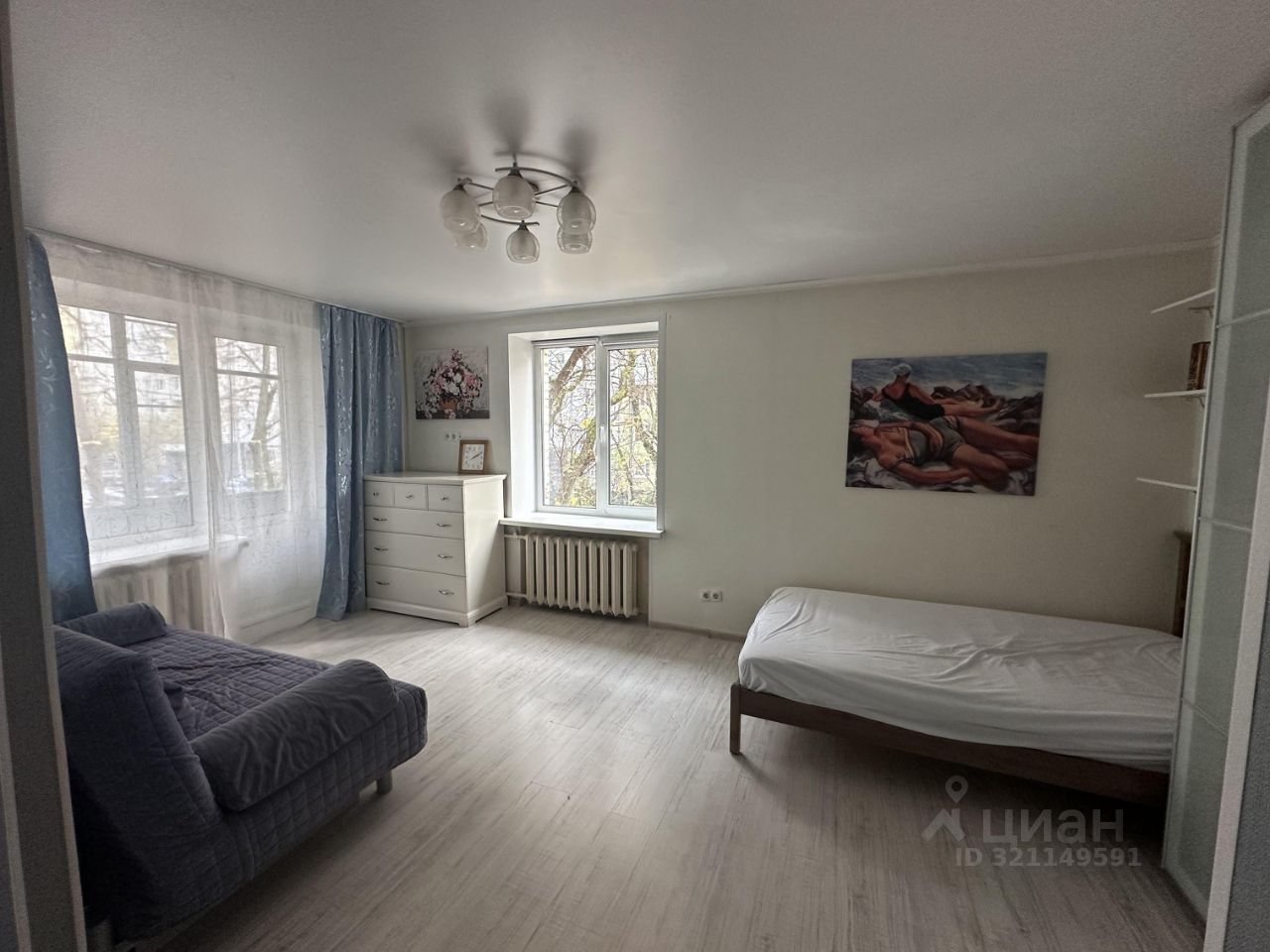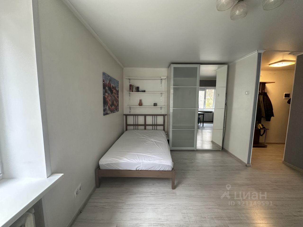 Много мест для хранения: гардеробная секция в прихожей, вместительный шкаф-купе в комнате и комод.