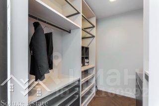 Вместительная гардеробная представляет собой просторное и организованное пространство, оснащенное полками, вешалками и ящиками для удобного хранения одежды и аксессуаров. Большое зеркало во весь рост и качественное освещение создают комфортную атмосферу.