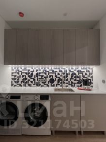 — кухня с варочной панелью, кофемашиной, техникой, холодильником