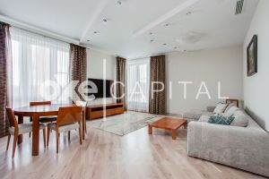 Квартира полностью оснащена всей необходимой техникой (BOSH, Siemens, Miele): приточно-вытяжная вентиляция, теплые полы, водонагреватель, посудомоечная машина, вместительные шкафы. Есть м/м в подземном паркинге.
