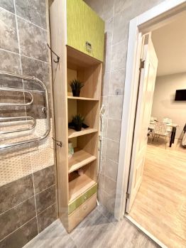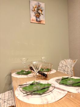 На уютной кухне Вы с удовольствием позавтракаете в тишине. Кухня полностью оборудована всей необходимой посудой и техникой, сможете приготовить себе домашний ужин