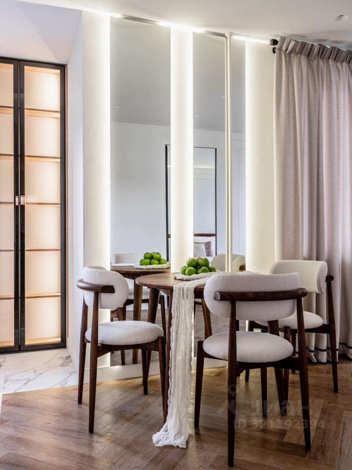 Удачное планировочное решение- студийная зона, включающая кухню, столовую и гостиную зону, спальня с гардеробной, большая просторная остекленная лоджия.